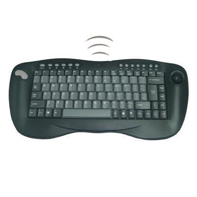 2.4GHz RF Wireless USB Mini Keyboard with Optical Trackball and Hot Keys 2.4 GHz with 8 channels provides up to 25 ft of wireless connectivity (maybe more) Optical trackball is easy to use, two button operation. Relatively small and very lightweight for portability. 800 DPI trackball has high resolution and large enough to be easy to use. Low profile keys for comfortable typing. Windows 2000 and above