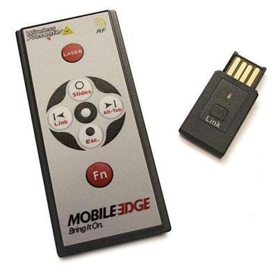 Wireless Express Presenter Remote...The Mobile Edge Express Presenter Remote is a handy, compact presentation tool. It allows you to control slides in any presentation or slide show software and includes a built-in laser pointer. The Express Presenter Remote allows you to control your presentation or slide show without being tied to your computer, while it?s built-in laser pointer allows you to to draw attention to key details without the need for a separate accessory. When not in use, it stores in your laptop's Express Card slot, making it easy to take with you on the road! The Mobile Edge Wireless Presentation Remote is your all-in-one presentation solution! Designed to store in your computer?s Express Card slot; Integrated Laser Pointer; Omni-Directional RF Range of over 60 feet; Forward, Reverse, Black, White and Escape screen controls; PC and Mac Compatible; Works with most presentation software.