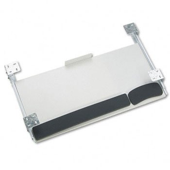 Drawer moves on ball bearing slides then locks into keying position. Wood drawer with durable laminate finish and black foam keyboard and mouse wrist rests. Clear Lexan mouse surface lifts up to display photos and notes. Accommodates most standard and ergonomic keyboards. Mounting hardware included. Workstation TypeDiagonal or Straight Glide Track Length15-3/4. Color(s): Light Gray; Keyboard Tray Dimensions (W x D): 27 x 12 1/2; Mouse Tray Dimensions (W x D): N/A; Height (+/- Desktop): +0/-3 1/2 Below.